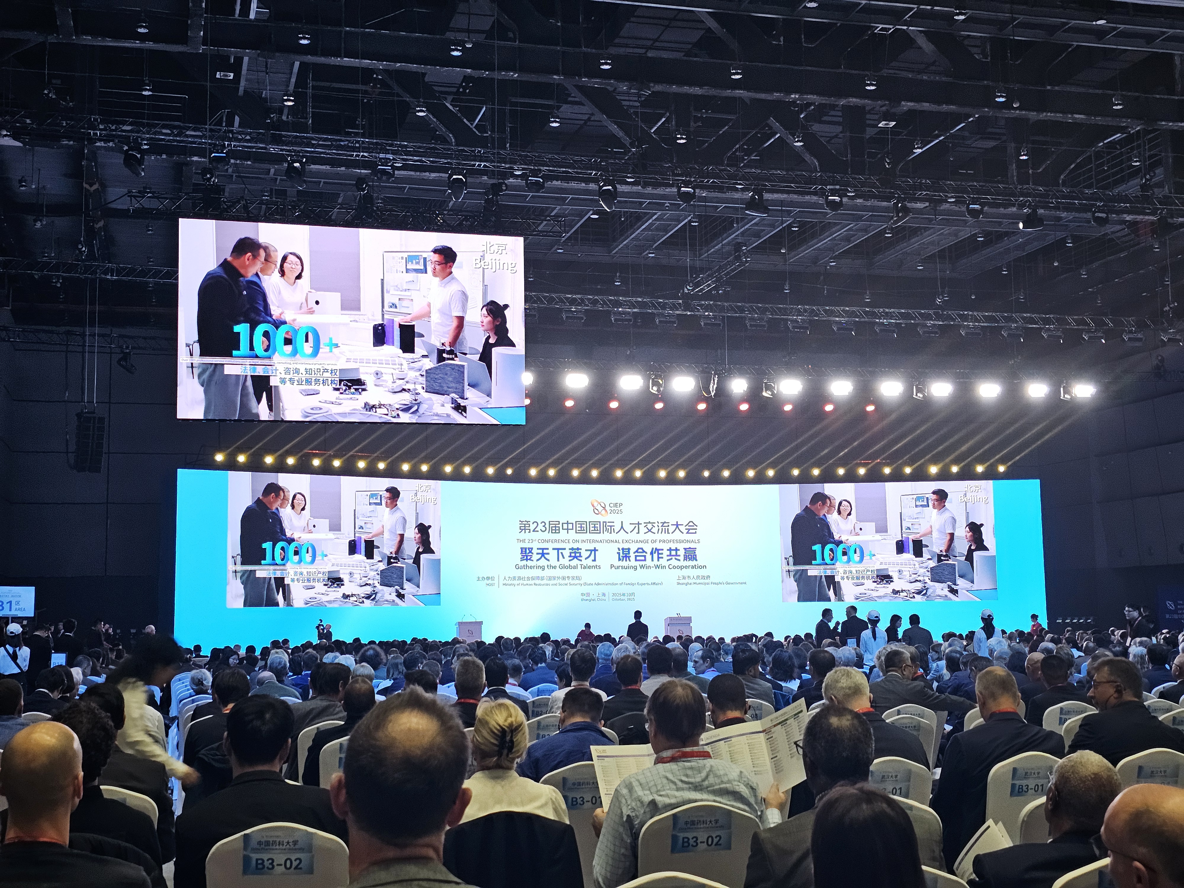 10月21日至22日,由人力资源社会保障部(国家外国专家局)和上海市人民政府联合主办的第23届中国国际人才交流大会在上海世博中心举行。国务委员谌贻琴以视频方式发表致辞并宣布开幕。人力资源和社会保障部部长王晓萍,上海市委常委、副市长吴伟,以及Andre K. Geim等四位诺贝尔奖得主致辞。大会以“聚天下英才、谋合作共赢”为主题,围绕70多个全球前沿领域设置41个分会场,吸引了来自110多个国家和地区的2600多名外国专家出席。我校党委常委、副校长丁锦希出席大会开幕式,并主持我校分会场活动。
