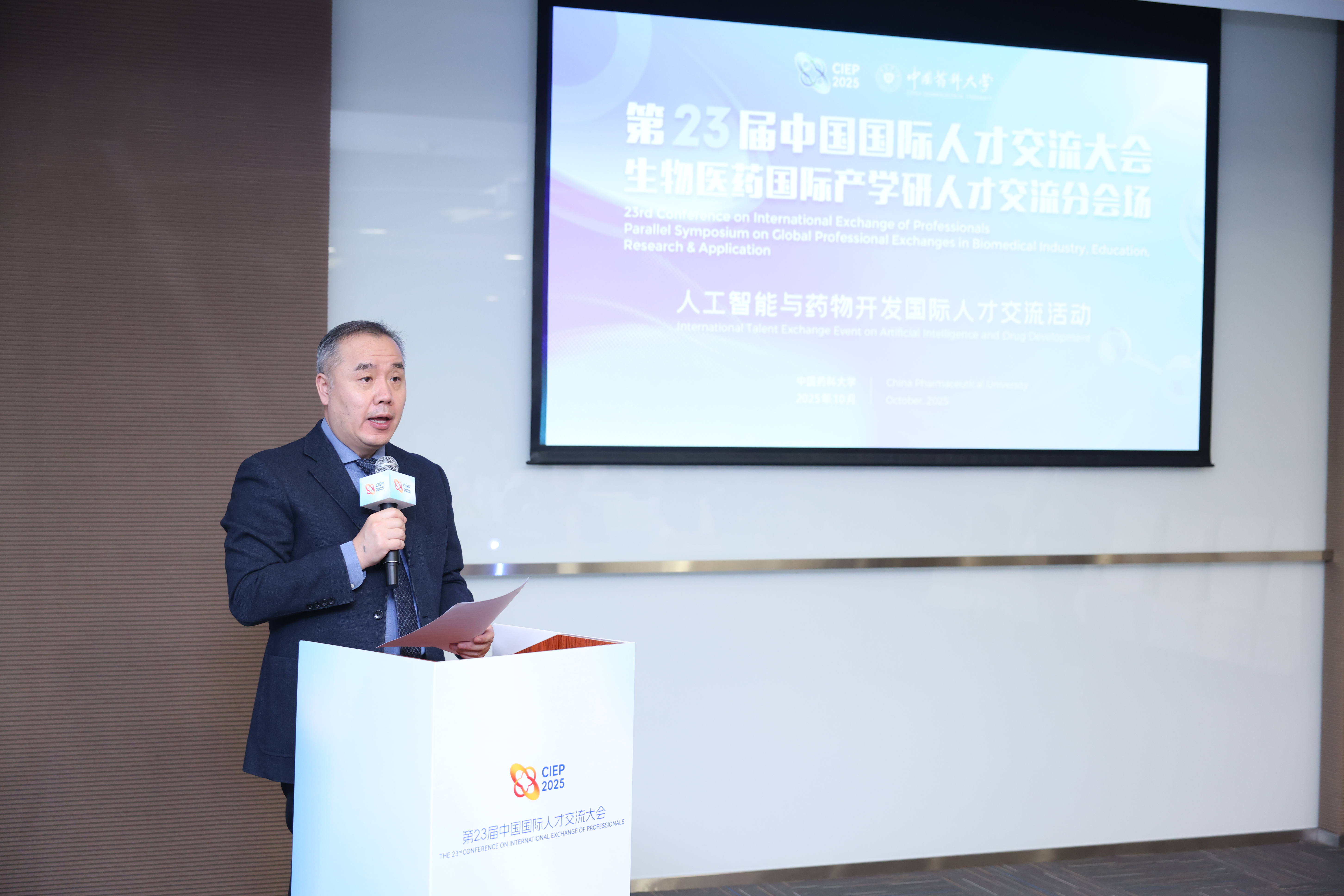 在我校承办的“生物医药国际产学研人才交流分会场”中,美国科学院院士NapoleoneFerrara等来自15个国家的42位顶尖外籍专家以及60余位国内院校专家学者和企业代表参加活动。丁锦希在开幕式致辞中指出,作为“中国生物医药人才摇篮”,学校高度重视引智引才工作,积极构建开放包容的创新生态,热忱欢迎海外专家学者走进我校,汇聚全球智慧推动医药科技跨越式发展。分会场设“人工智能与药物开发”“人兽共患病诊断试剂及疫苗研发”“天然产物健康品”三大论坛,与会专家就相关研究作交流。同时设置人才政策宣讲、企业项目路演环节,着力打造引智引才“强磁场”。