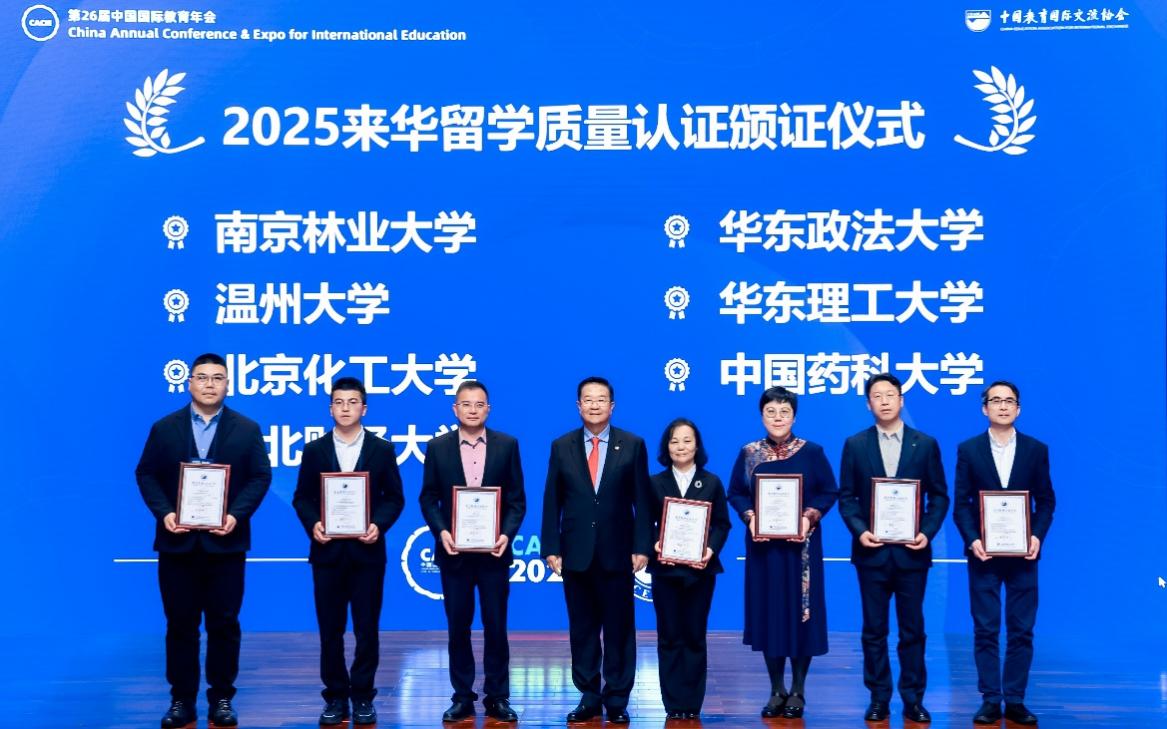 10月29日至30日,第26届中国国际教育年会在北京举行。会上,中国教育国际交流协会会长刘利民为本年度上半年通过来华留学生高等教育质量认证的21所高校颁发认证证书。我校以认证有效期6年的成绩顺利通过初次认证。