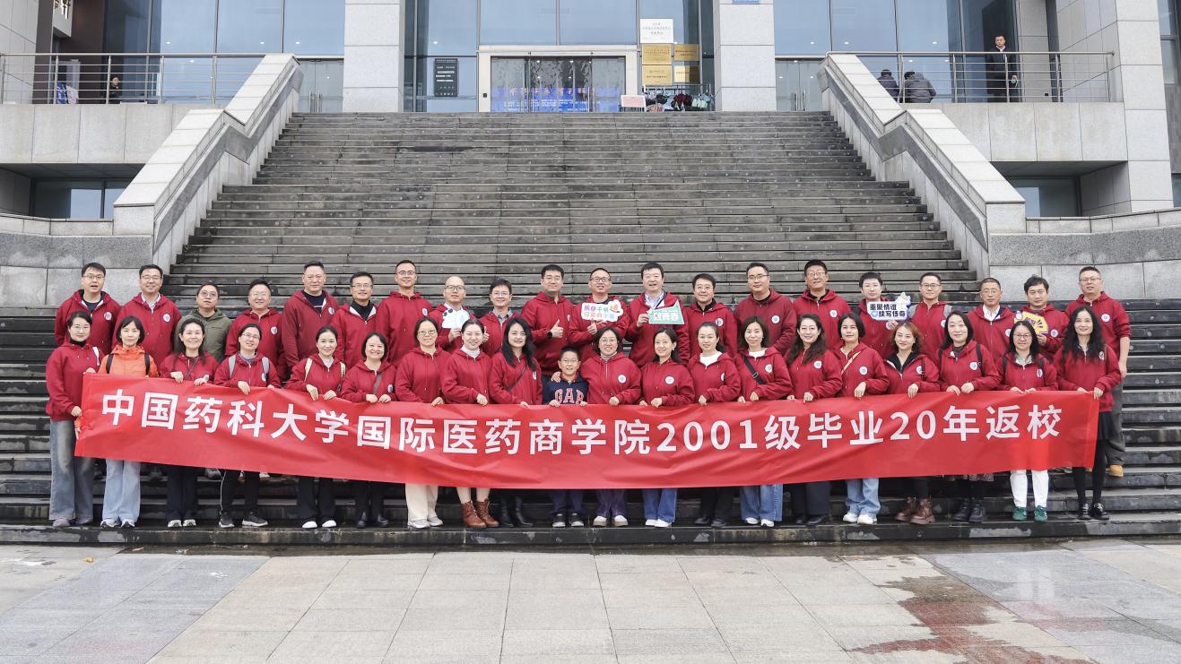 11月8日,国际医药商学院举行2001级校友毕业二十周年返校活动。国际医药商学院院长常峰,外国语学院党委书记、商学院2001级辅导员付蕾,商学院党委副书记赵瑾等参加活动。