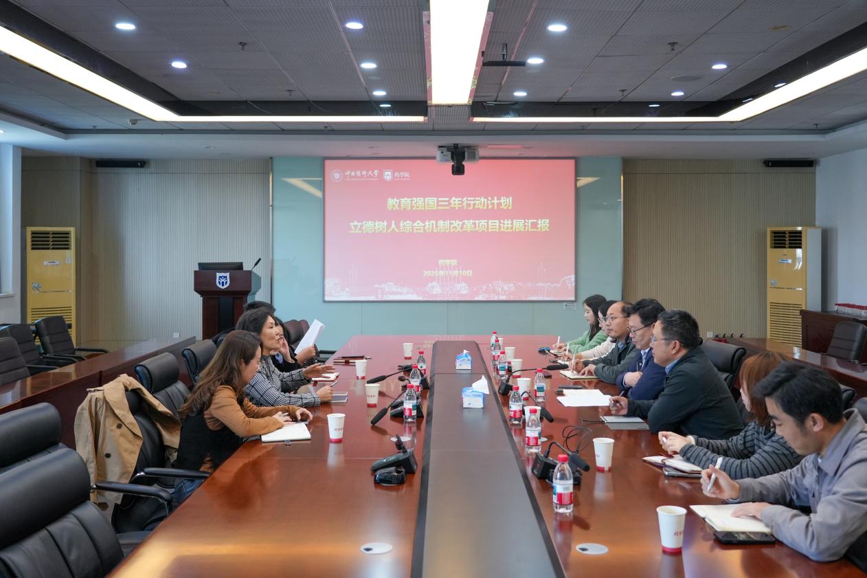 会上,范素文以“一体・双维・三递进药学英才领航培养工程”为主线汇报了学院获批立德树人机制综合改革试点院系以来重点任务进展情况;孟祥康汇报了“一站式”学生社区建设、五育并举育人体系、人工智能赋能思政教育等方面具体工作举措。