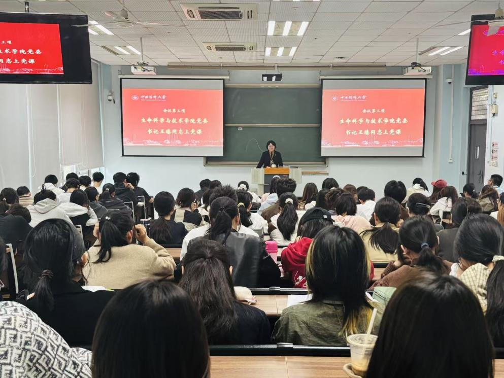 11月12日,生命科学与技术学院2025年秋季党校入党积极分子培训班开班仪式暨党课报告会在江宁校区E203教室举行。院党委书记王臻出席开班仪式并作专题党课。学院组织员、辅导员及120余名入党积极分子参加仪式。