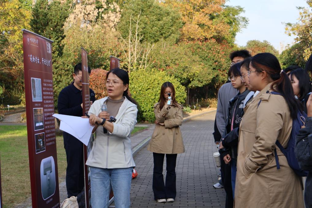 观展之后,各位授课教师化身为讲解员,现场讲述起徐国钧院士的励志故事。没有PPT,没有板书,老师们用聊天式的讲解,把“大道理”变成“身边事”,学生们听得认真、记得仔细,时不时互动交流。随后,同学们结合所学所思进行分组研讨,并现场分享自己的心得体会。活动最后,学生代表手持菊花,向徐国钧院士塑像深深鞠躬,并将鲜花敬献在塑像前。这一简单而庄严的仪式,不仅是对院士的深切缅怀,更是学生们“向榜样学习”的承诺和中国药大精神的传承。