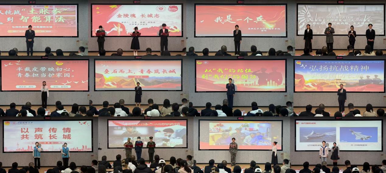 活动以“弘扬抗战精神,共筑国防长城”为主题,经个人申报、视频初选,12 组参赛选手成功入围现场比赛。选手们娓娓道来,深情讲述了一则则感人至深的故事。有的同学通过情景演绎,动情分享喀喇昆仑戍边烈士陈祥榕的英雄事迹;有的同学结合自身成长,回顾父辈在红其拉甫边境线上数十年如一日的默默坚守;有的同学结合军训经历,诠释纪律与团结的深刻内涵。不仅如此,现场还有退役大学生士兵以“从迷彩戎装到实验服”为主线,回溯军旅岁月,讲述责任与担当的传承故事。一幕幕真挚表达,尽显当代青年浓厚的家国情怀与使命担当。