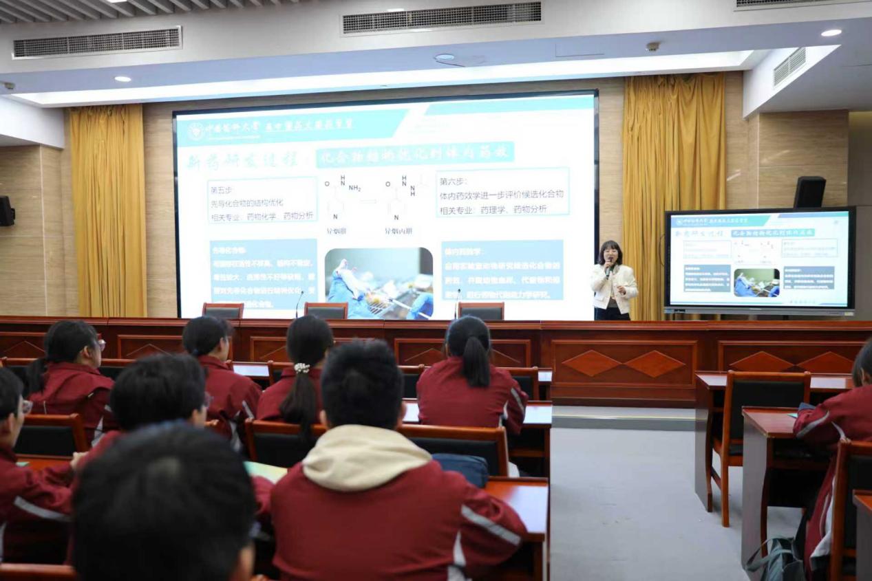 最后,校团委副书记、药学院副研究员张华清带来精彩的科普讲座,以自身学习科研经历为切入点,结合典型案例生动诠释了现代药学的使命价值,为在场学子打开了认识医药健康事业的新窗口。
