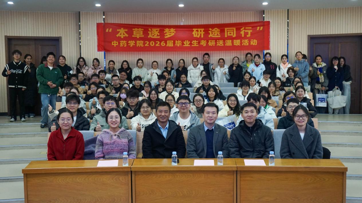 为进一步强化迎考信心、缓解备考压力,12月3日,中药学院在江宁校区开展“本草逐梦,研途同行”2026届毕业生考研送温暖活动。院党委书记林生、党委副书记汪永生、毕业班辅导员、研究生代表及2026届考研学生参加活动。
