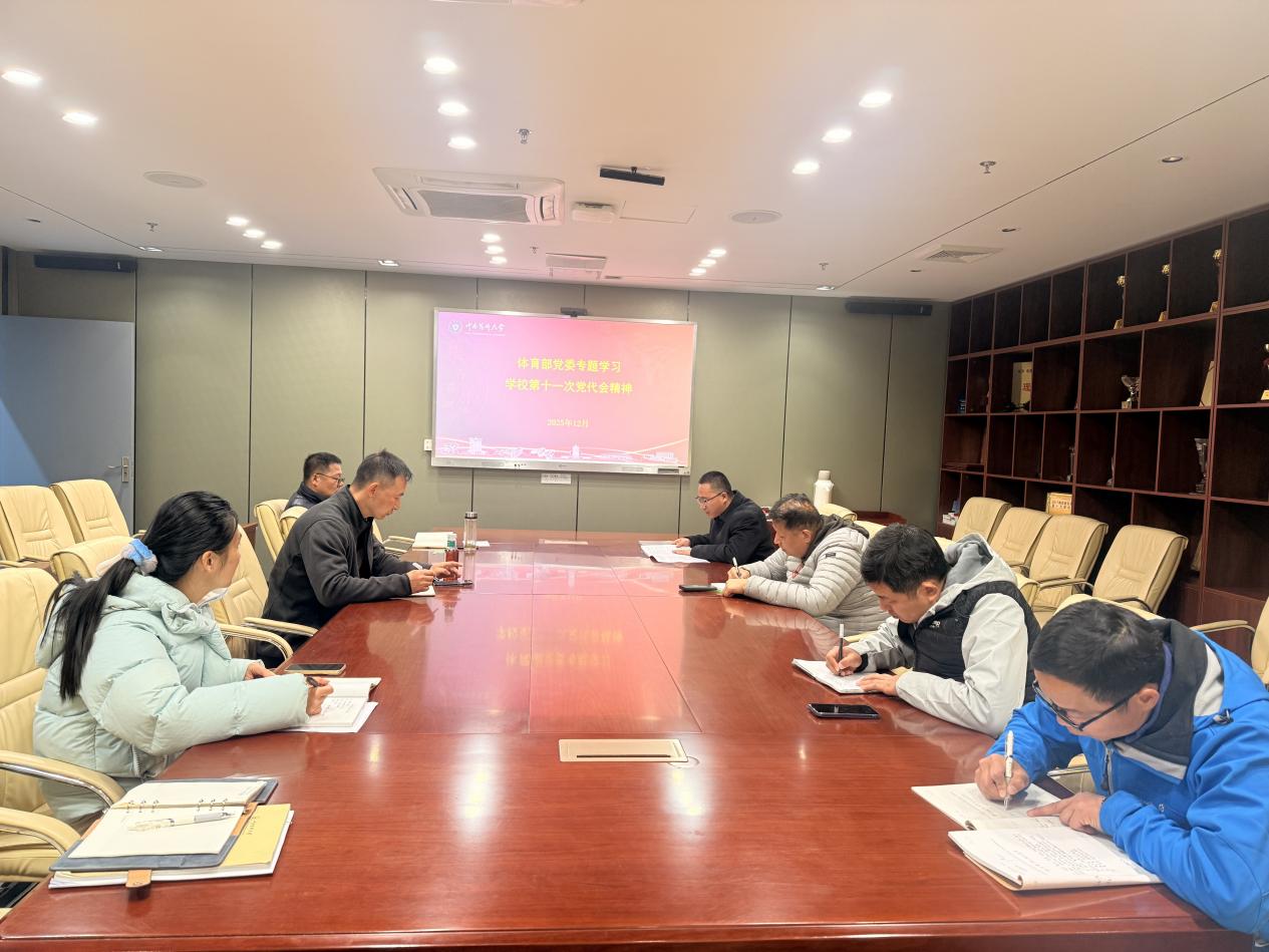 为深入学习贯彻学校第十一次党代会精神,12月2日、3日,体育部先后召开党委理论学习中心组学习会和全体教职工会议进行集中学习,确保精神传达全覆盖、学习落实见实效。