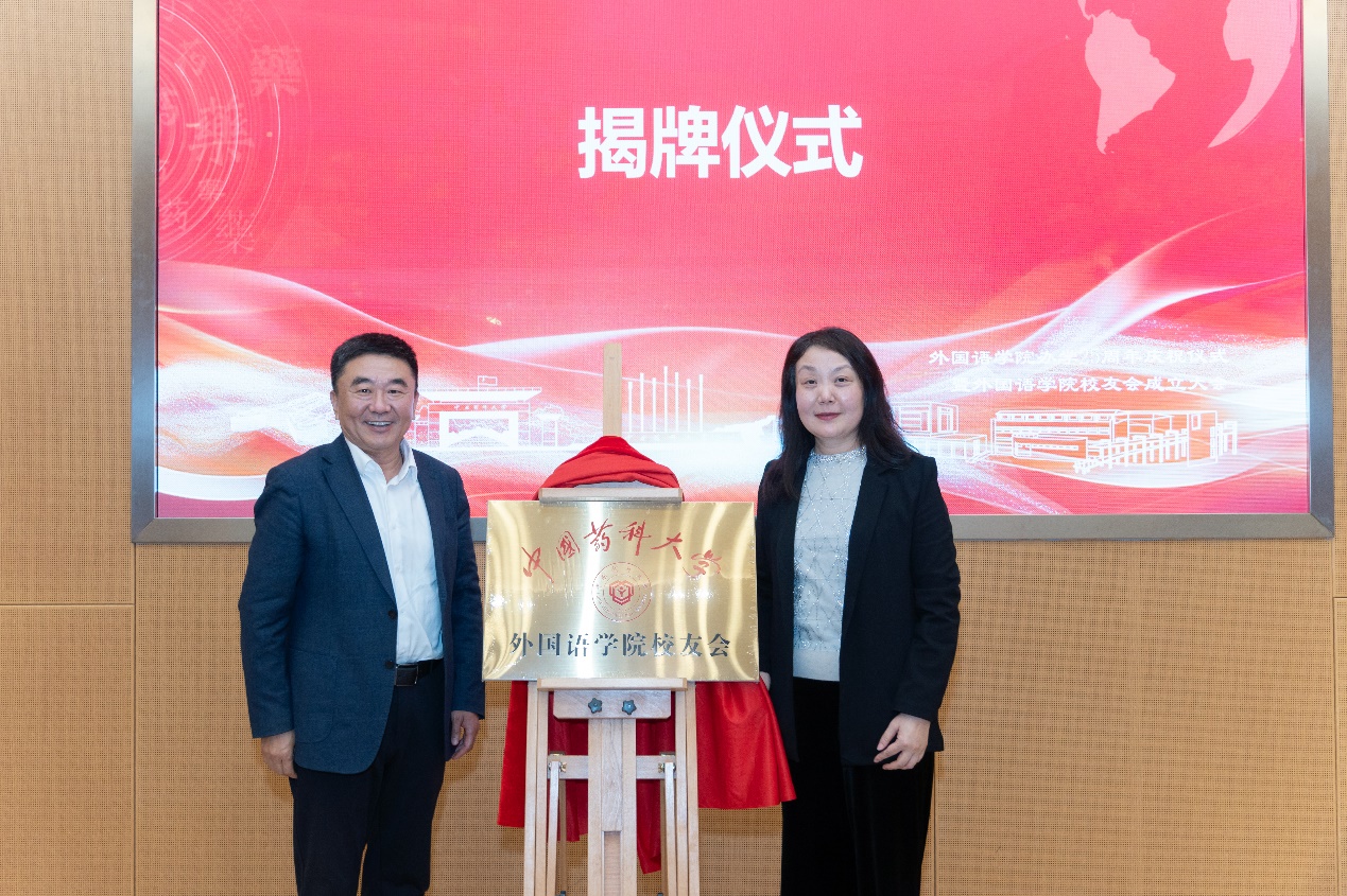 于广琮与赵光慧共同为“外国语学院校友会”揭牌。狄斌宣读了外国语学院校友会机构设置及任职人员名单,于广琮与赵光慧分别为校友会成员及校友联络员代表颁发了聘书。