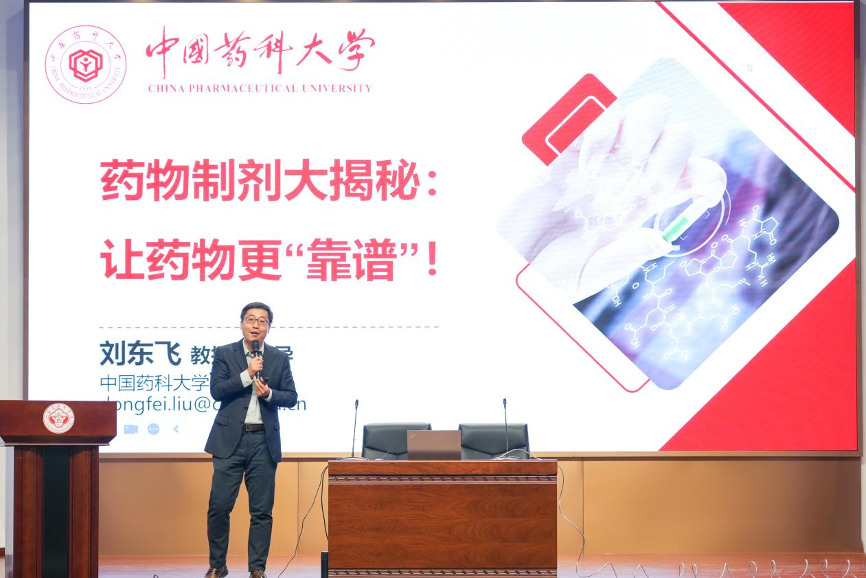 活动现场,药学院副院长刘东飞教授为扬州中学师生作题为《药物制剂大揭秘:让药物更“靠谱”》的药学科普讲座,将深奥的药学前沿知识化为生动有趣的科学故事,激发了同学们对药学领域的浓厚兴趣。现场互动频频,气氛热烈。