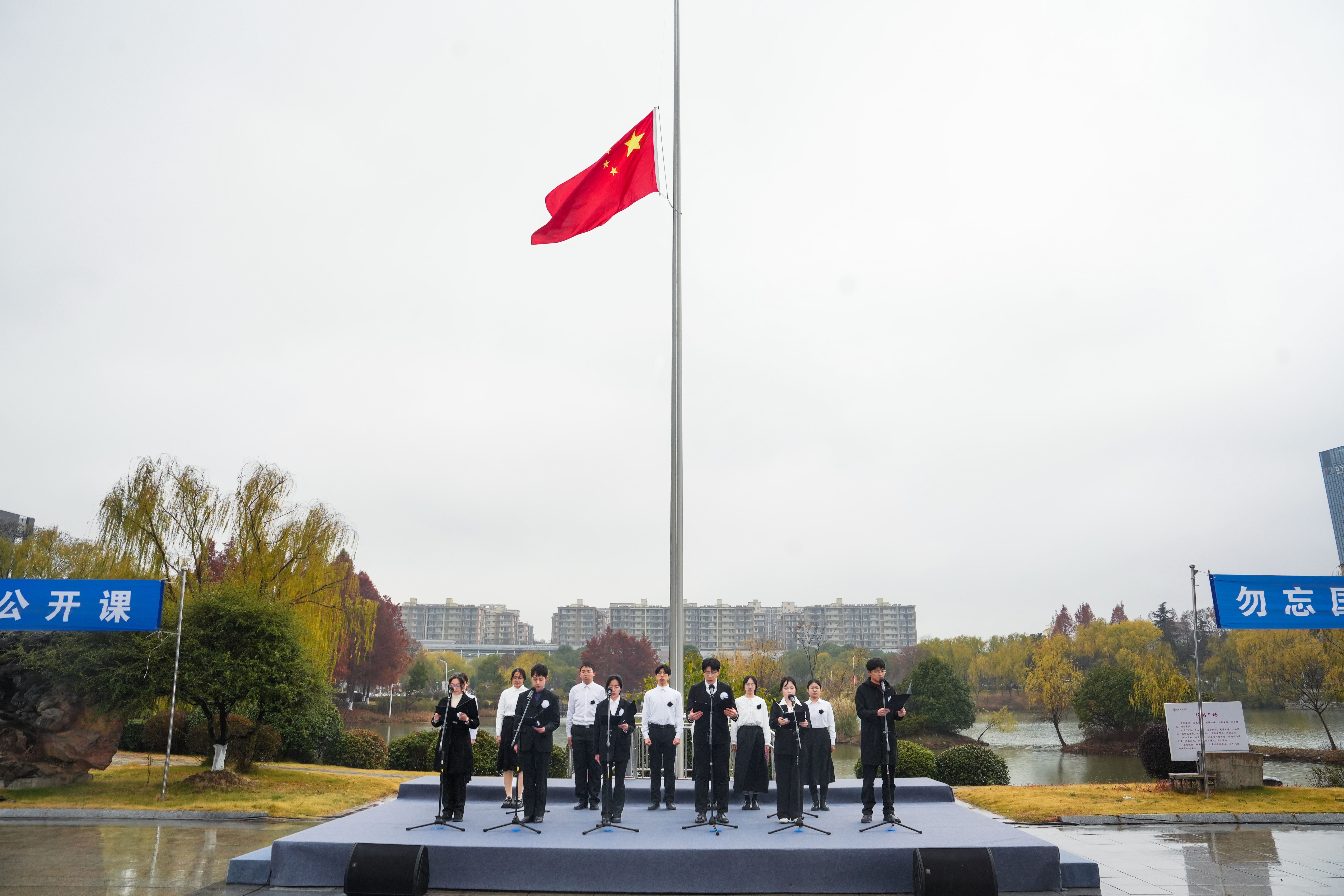 12月13日,由校团委主办、生命科学与技术学院承办的“勿忘国耻、圆梦中华”南京大屠杀死难者国家公祭日升国旗、下半旗仪式暨“国旗下的公开课”第四十五次集体课程在江宁校区1936广场举行。校党委副书记朱红出席活动。相关职能部门负责人,各学院领导、师生代表等800余人参加活动。活动由生命科学与技术学院党委书记王臻主持。