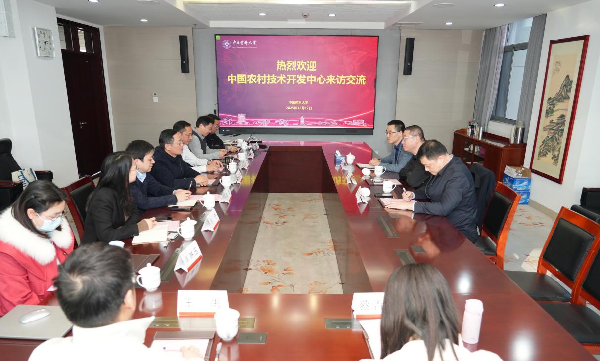 戴建君对王峻、朱华平一行莅临指导表示热烈欢迎。他指出,近年来,学校立足药学传统优势,积极拓展交叉学科领域,在兽药研发、食品科学等与农业农村发展密切相关的方向持续发力,已形成特色鲜明的学科体系和科研平台。他希望与中国农村技术开发中心深化合作,在农业科技专项申报、创新平台共建、成果转化落地等方面实现资源共享、优势互补,为国家农业科技进步贡献中国药大智慧。