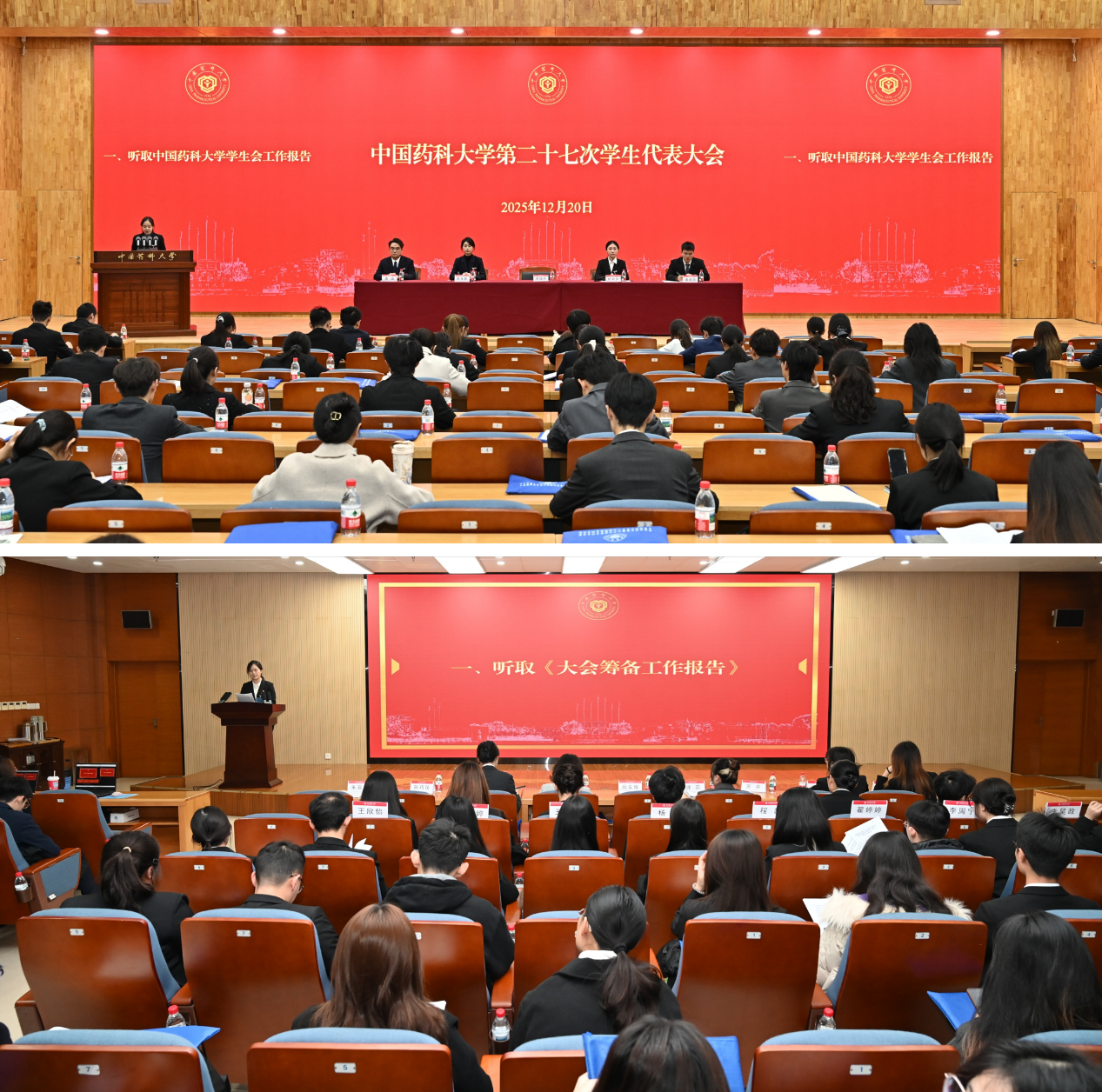 12月20日,中国药科大学第二十七次学生代表大会、第十七次研究生代表大会在江宁校区召开。校党委副书记朱红,江苏省学生联合会驻会执行主席王浩淼出席大会。校党委组织部、宣传部、学工部(研工部)、团委等部门负责人,各学院分管学生工作党委副书记、团委书记,在宁兄弟高校学生会组织代表以及206名本科生、研究生代表参加大会。