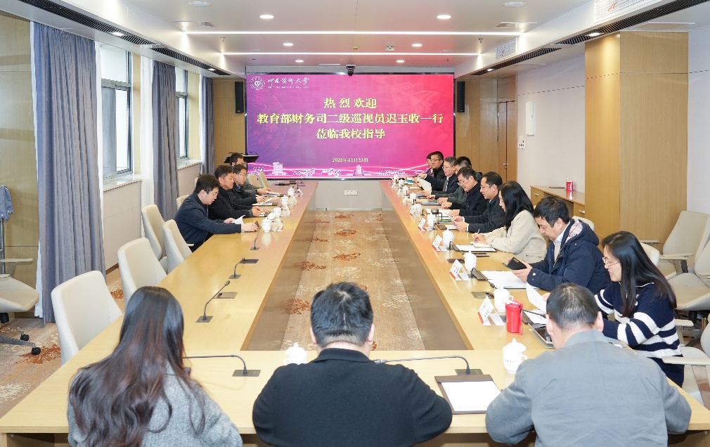12月23日上午,教育部财务司二级巡视员迟玉收一行来我校调研无形资产、数据资产及科技成果转化管理工作。校党委书记戴建君出席座谈会,校党委常委、副校长杨勇主持会议,校长办公室、国有资产管理处、科学技术研究院、信息化建设管理处负责人参会交流。