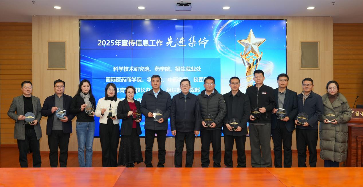 戴建君代表学校党委向获得表彰的集体和个人表示热烈祝贺,向全体宣传信息工作战线的同志们表示衷心感谢。他指出,过去一年,学校各项事业取得显著成效,会议专门设置“十件大事”发布环节,不仅展现了2025年学校各方面工作的重大成果和突破,也是宣传信息工作始终与学校发展同频共振的集中体现。戴建君强调,宣传信息工作是一项极其重要的工作,一是要突出思想引领与价值塑造,推动党的创新理论武装走深走实,并切实发挥好立德树人这一教育强国建设“一号工程”的价值引领作用;二是要服务中心、助力发展,围绕学校人才培养与科学研究工作,以高质量宣传赋能改革发展各项任务落地见效;三是要统筹利用好全媒体传播格局,注重内容生产和新闻发布的谋划工作,更多聚焦药大师生和基层一线的正面感人故事;四是要加强网络管理与文化建设,在坚决守牢网络主阵地的同时,努力凝练学校文化特征,塑造校园文化品牌;五是要加强对外宣传和形象建设,进一步拓展各类宣传渠道特别是加强与中央主流媒体积极联动,放大新时代学校发展声量;六是要加强宣传队伍建设,着力建强富有战斗力的专兼职宣传工作队伍,不断完善正向引导和激励机制,大力营造“人人都是宣传员”的浓厚校园氛围。