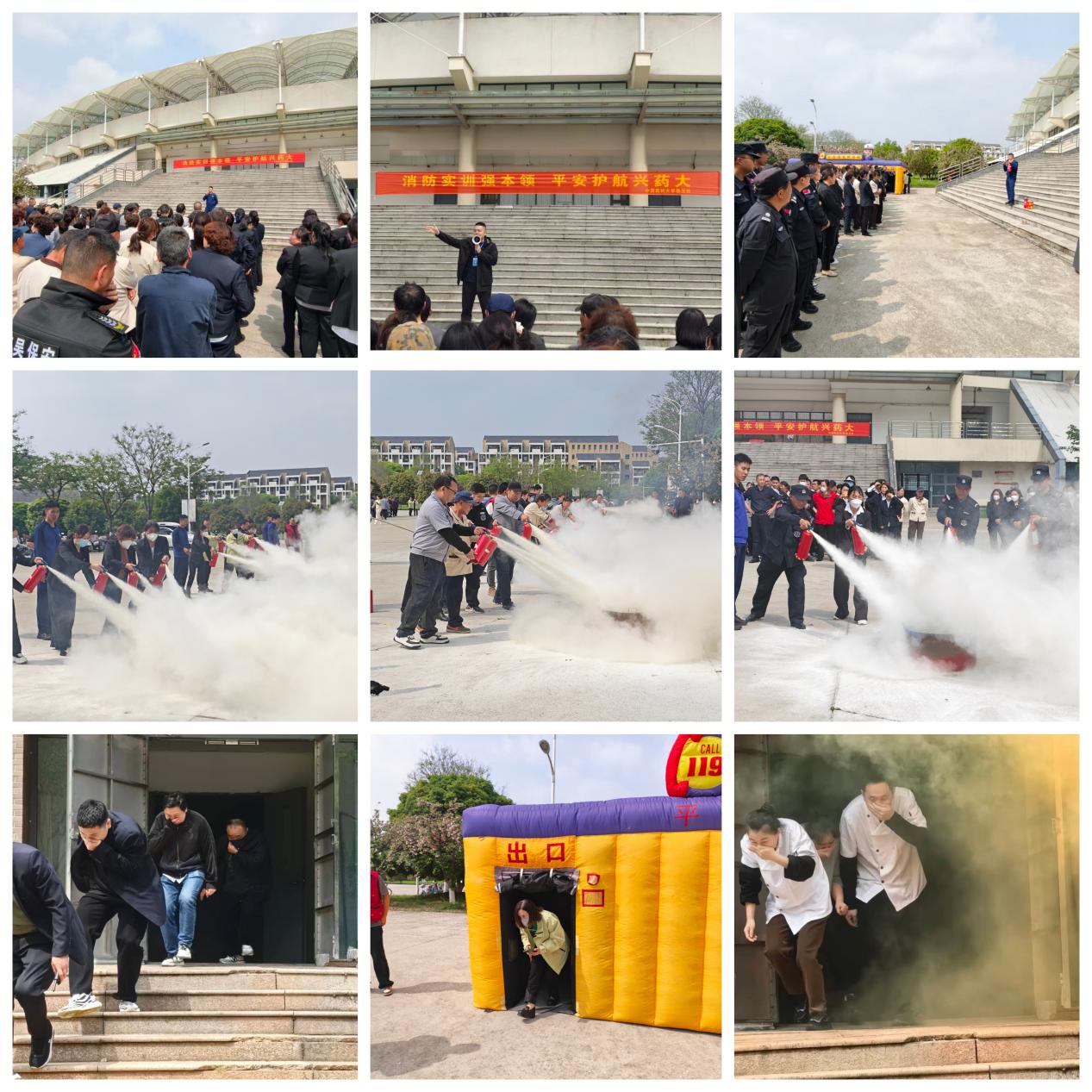 近日,保卫处联合后勤集团总公司、基建后勤处,邀请江宁区消防大队、高新消防中队,共同组织开展江宁校区后勤安保人员应急疏散演练与消防技能培训。