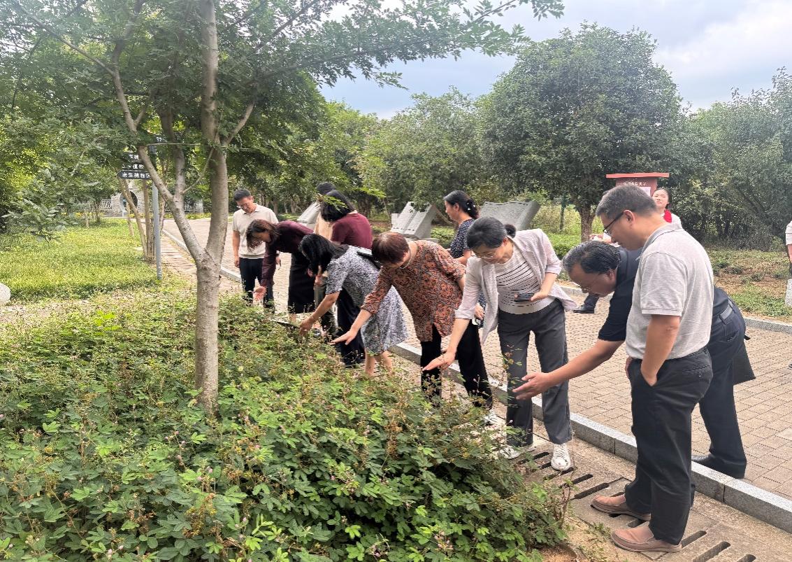 结束博物馆参观后,调研组前往药用植物园开展实地调研。在讲解人员的引导下,大家近距离观察丹参、薄荷、柴胡等常见药用植物的生长状态,详细询问其药用功效与栽培技术。调研期间,雷慧清一行还品尝了园内自制的金丝皇菊茶饮,清甜的口感与独特的香气令人印象深刻。