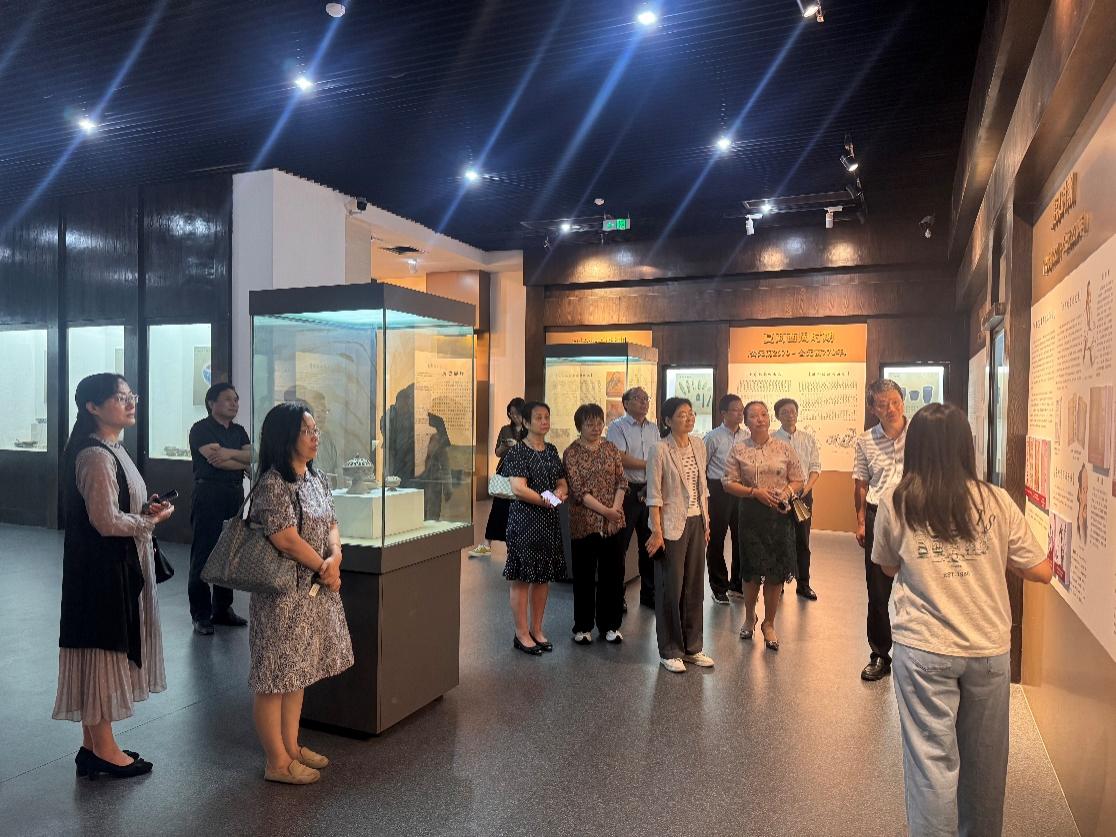 在药学博物馆二楼展厅,讲解老师带领雷慧清一行系统梳理了中国药学绵延千年的发展脉络,深入解读了中药炮制技艺的精髓,并同步展示了与之配套的传统工具。
