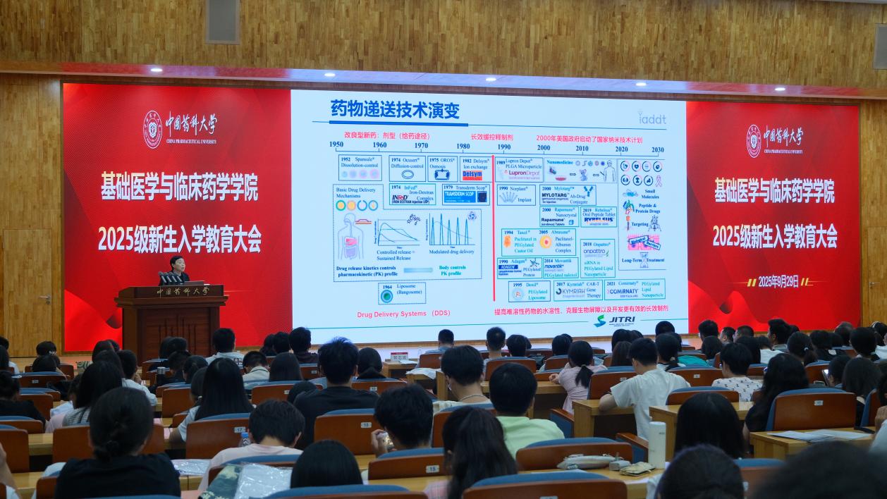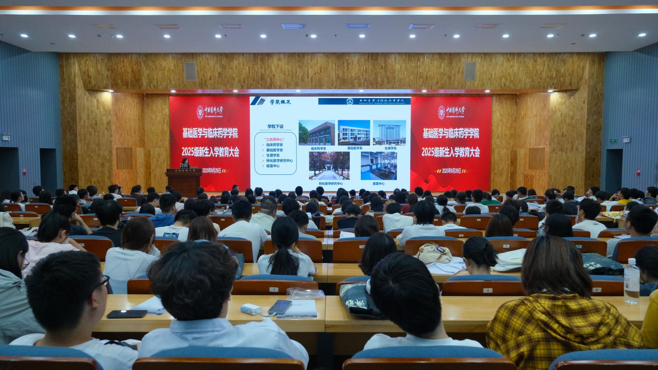 大会在雄壮的国歌声中拉开序幕。院党委书记徐明向2025级全体新生表示热烈欢迎,他鼓励全院学子心怀“国之大者”,以“精业济群”为指引,努力成长为“懂医精药、善作善成”的高层次临床药学人才。院常务副院长胡容详细介绍了学院的发展历程、办学特色、科研实力及未来规划。