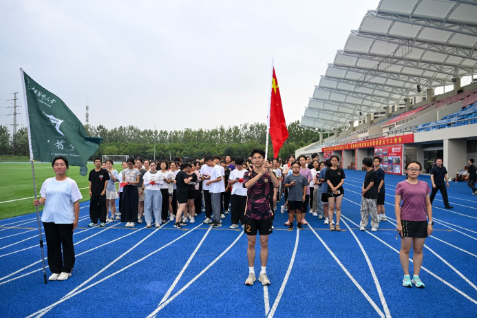 在充分的热身后,活动正式开启。在起跑仪式上,中药学院党委副书记汪永生在致辞中表示,举办在国庆节来临之际开展校园健康跑活动,是旨在弘扬爱国主义精神和,倡导健康生活方式的生动实践。,希望同学们将奋斗的青春与家国情怀同频共振,把爱国爱校情怀转化为学习科研的动力,切实肩负起中医药事业发展的重任。