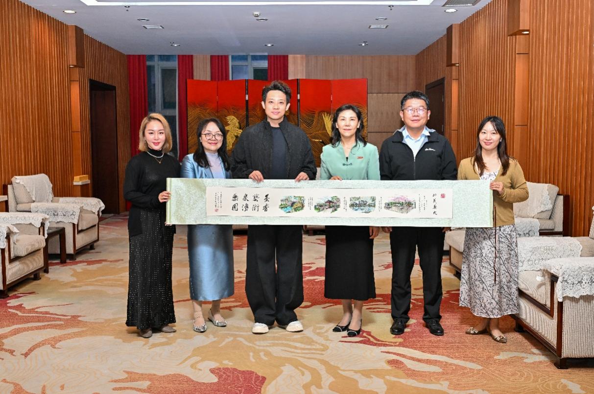 演出前,校党委副书记朱红与扬州市歌舞剧院副院长周晨、演出团副团长袁美、舞剧《朱自清》导演谢丽莉等一行亲切会谈,并向扬州市歌舞剧院赠送《醉美药大》主题卷轴。双方就高雅艺术如何助力提升大学生人文素养展开交流探讨。