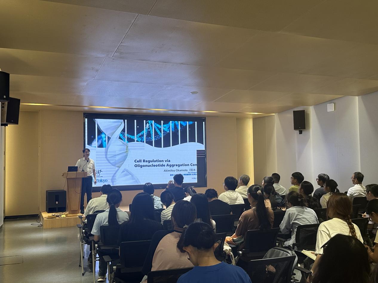 随后,岡本以Cell Regulation via Oligonucleotide Aggregation Control为题作专题报告。报告中,他阐释了如何通过精确控制寡核苷酸的聚集与解聚状态,以实现对细胞生命活动的精准调控。问答环节中,师生们踊跃提问,现场氛围热烈。