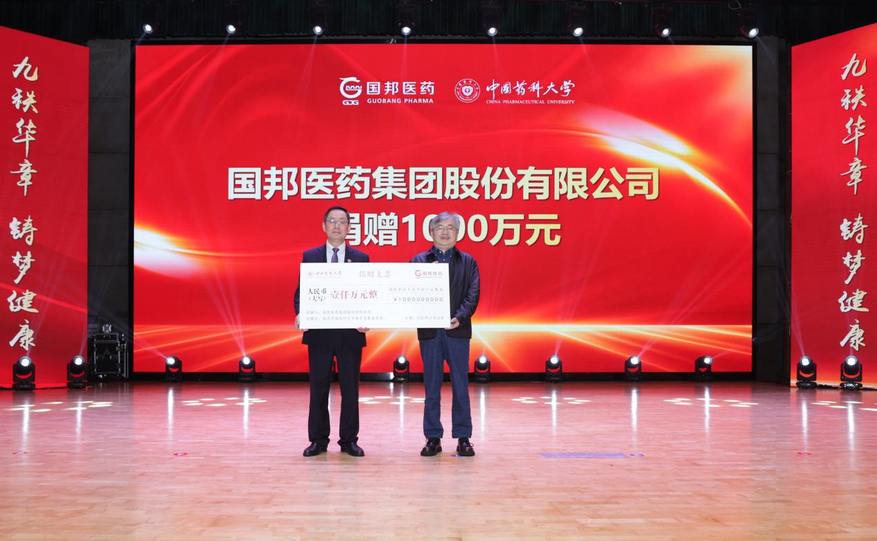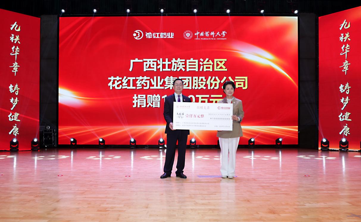会上,还举行了校友捐赠仪式。国邦医药集团董事长邱家军校友、花红药业集团董事长韦飞燕校友分别向我校捐赠1000万元。