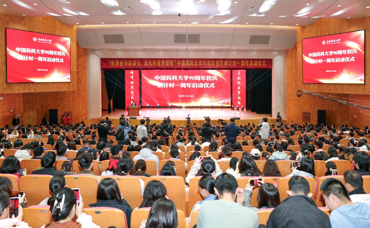 兴药强国,铸梦健康。11月16日,中国药科大学90周年校庆倒计时一周年启动仪式在江宁校区大礼堂隆重举行。中国工程院院士王广基教授、江苏恒瑞医药董事长孙飘扬先生等校友代表、全体在宁校领导、近期退出班子的校领导、全体中层干部、党支部书记、教研室主任、民主党派负责人、无党派人士代表、师生代表等在大礼堂参与仪式。本次活动还通过新华网等网络平台同步直播,全校师生员工、海内外校友和关心支持学校建设与发展的各界人士等共计150余万人相聚线上,共襄盛会。启动仪式由校长郝海平主持。