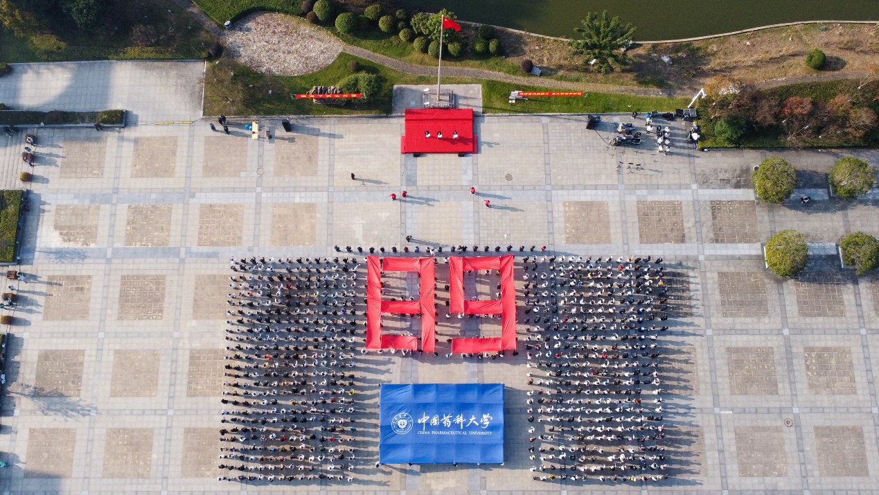 其间,广场上师生们佩戴校徽,摆出“89”字样,舞动着校旗和彩带,庆祝学校89周年华诞。最后,中药学院研究生韩翔宇带领全体同学重温药学生誓词,在激昂的旋律中,全体师生共同唱响校歌,祝福中国药科大学的明天更加辉煌。