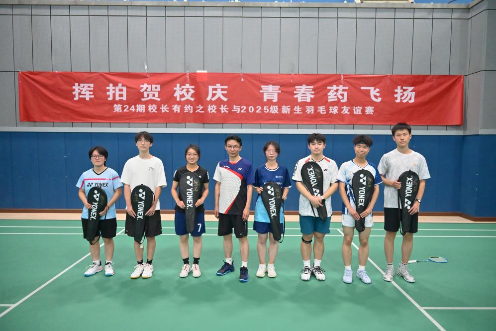 11月16日下午,“挥拍贺校庆,青春药飞扬”——我校第24期“校长有约”之校长与2025级新生羽毛球友谊赛在江宁校区体育馆举行。校长郝海平、校党委副书记朱红出席活动,相关部门负责人、各学院分管学生工作副书记、2025级新生代表参加。活动由学工处副处长(主持工作)方芳主持。