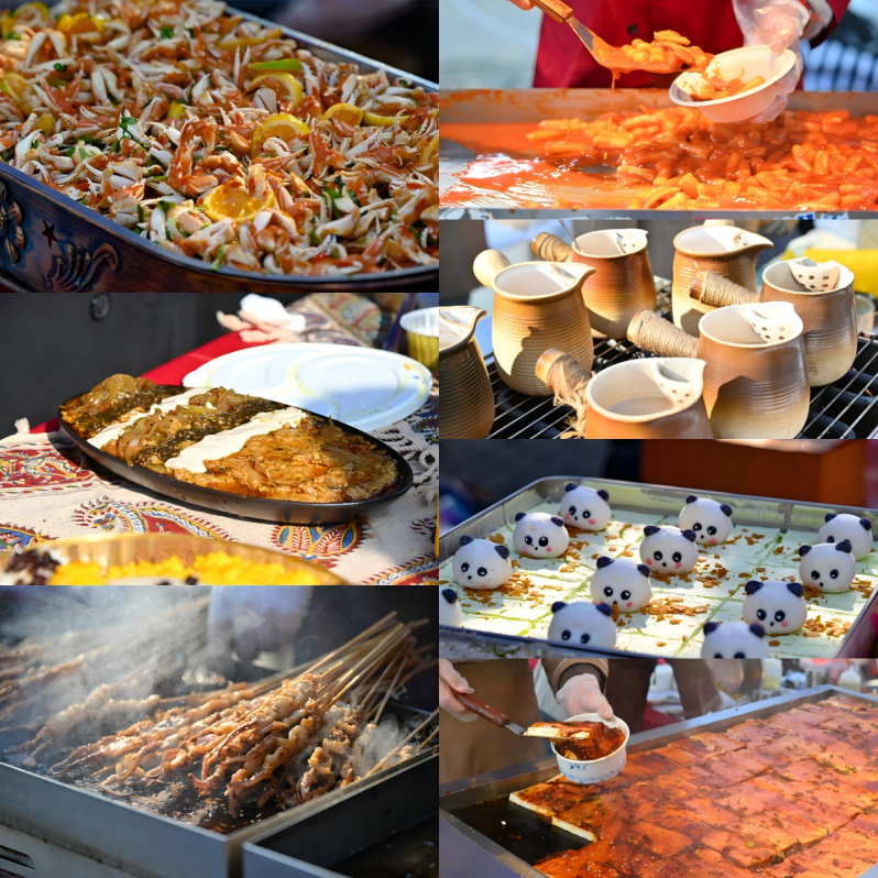本次活动,现场共设置32个美食摊位,汇聚了南北风味、异国特色、非遗小吃等。蒙古大肉串、台湾蚵仔煎等摊位前排起长龙;韩国芝士炒年糕、半价哈根达斯、俄罗斯大肉串等让师生足不出校便可体验异域风情;非遗谷里鱼圆、金陵梅花发糕等受到师生广泛喜爱;“奶皮子糖葫芦”、芝士火鸡面蛋饼更是创新大家的味蕾体验,现场气氛热烈,欢声不断。