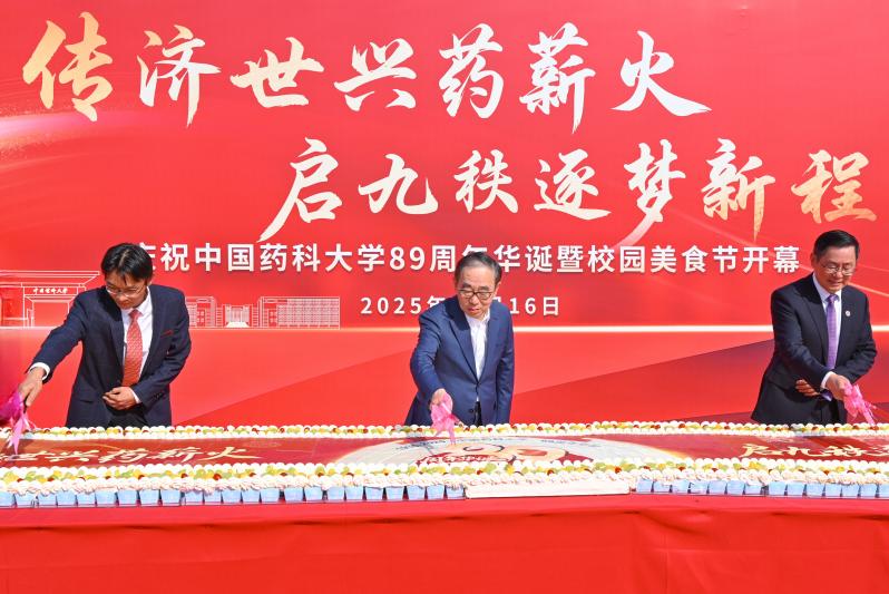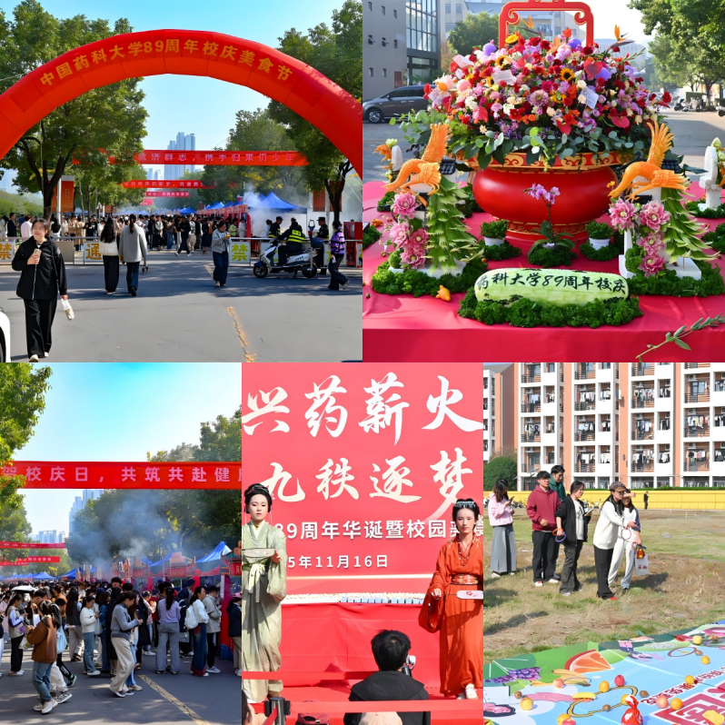 11月16日上午,庆祝中国药科大学89周年华诞校园美食节活动在江宁校区第二食堂东侧大草坪开幕。校党委书记戴建君、校长郝海平等出席活动,1978级校友、江苏恒瑞医药董事长孙飘扬等校友代表返回母校参加活动,与万余名师生共享“舌尖上的药大”。