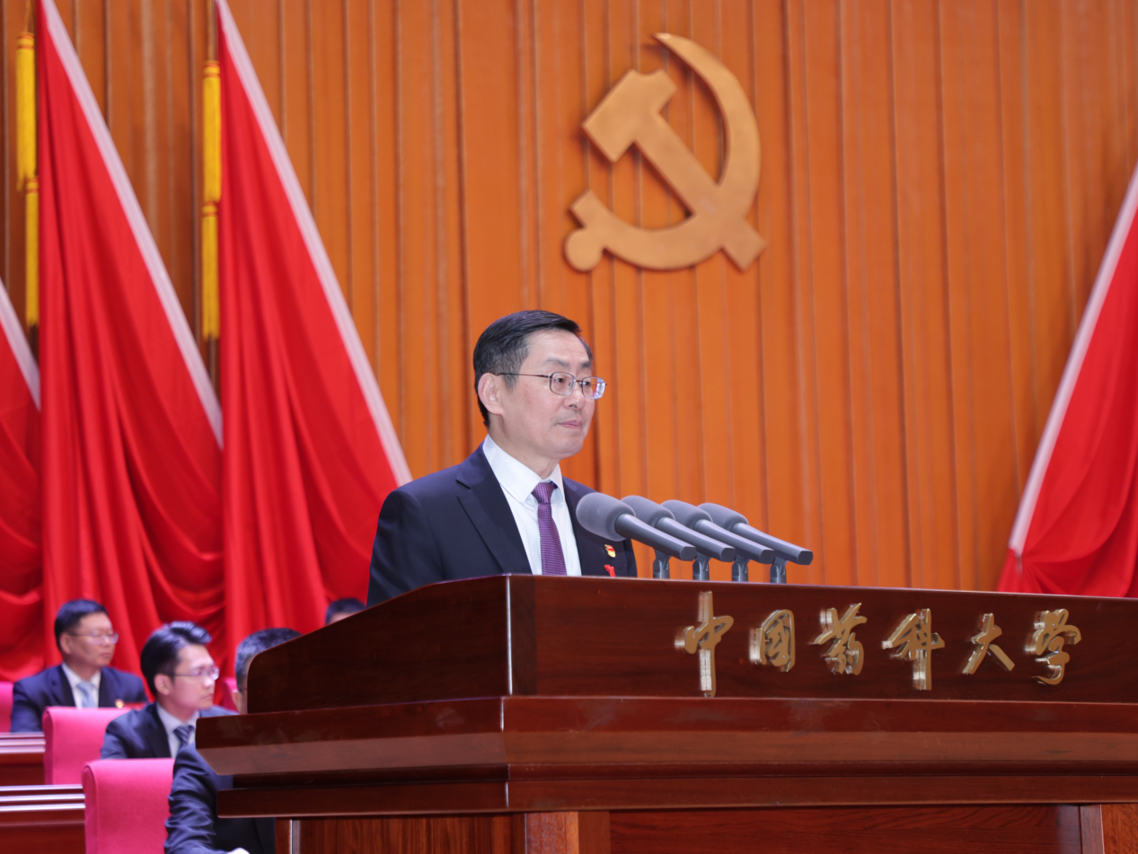 周天华受教育部党组委派,向大会的召开表示热烈祝贺,向中国药科大学全体共产党员和全校师生员工致以诚挚的问候和崇高的敬意。他表示,中国药科大学是我国历史上第一所由国家创办的药学高等学府。建校89年来,始终秉持“精业济群”校训精神,培养造就了众多药学领域著名专家学者、医药企业家和一大批高素质药学专门人才。第十次党代会召开以来,学校党委坚持以习近平新时代中国特色社会主义思想为指导,全面贯彻党的教育方针,牢牢把握社会主义办学方向,坚决落实习近平总书记关于教育和“中国药”的重要论述和重要指示批示精神,扎实推进“双一流”建设,取得显著成绩,彰显了新时代药学高等教育国家队的责任与担当。希望学校新一届党委要进一步提高政治站位,坚持和加强党对教育工作的全面领导,牢牢把握社会主义办学方向;要胸怀“国之大者”,主动对接国家战略需求,在推进教育强国建设中贡献中国药大力量;要持之以恒推进全面从严治党,巩固拓展深入贯彻中央八项规定精神学习教育成果,为学校改革发展稳定提供坚强政治保证。在习近平新时代中国特色社会主义思想指导下,立足“两个大局”,坚持“四个面向”,增强“四个意识”,坚定“四个自信”,做到“两个维护”,团结带领广大师生员工不断开创事业发展新局面,切实回答好“教育强国,药大何为”的时代课题,为推进强国建设、民族复兴伟业作出新的更大贡献。