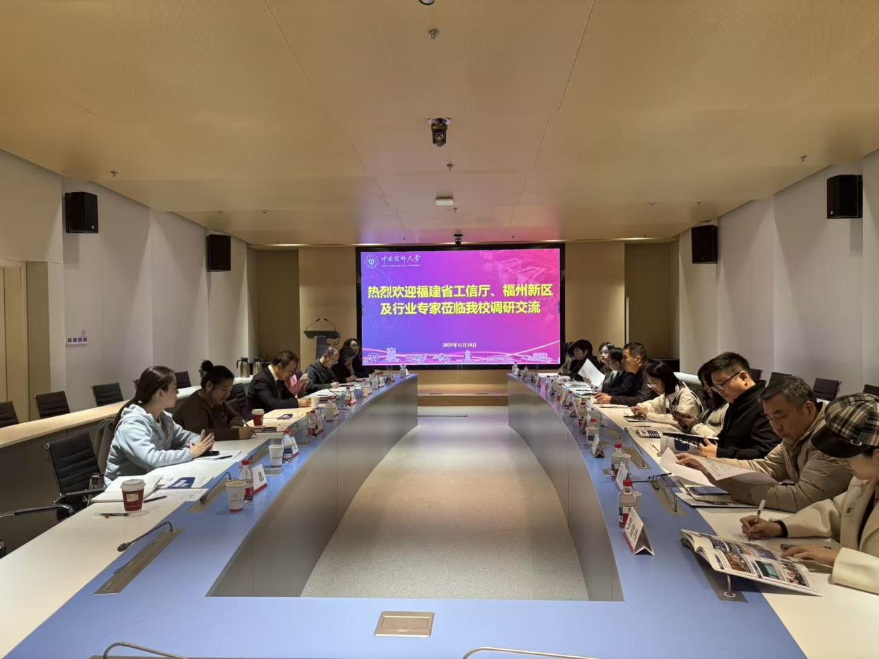 11月18日,福建省工业和信息化厅消费品处处长郭诚一行来我校洽谈交流。福州新区、福建省医药行业协会、福建省福抗药业股份有限公司、厦门特宝生物工程股份有限公司及福建广生堂药业股份有限公司等单位负责人,我校科学技术研究院正处级党建联络员李志裕、副院长张甜,以及相关职能部门及教师代表出席洽谈会。