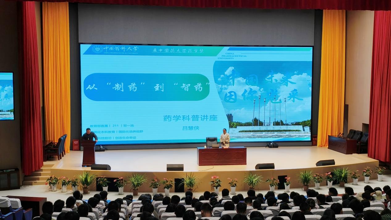 活动现场,药学院吕慧侠教授以《从“制药”到“智药”》为题开展科普讲座。她将药物比作一把精准的“生命钥匙”,开启了高中学子对药学世界的好奇与向往。她向同学们讲解了药物从草根树皮到提纯合成,再到今天的靶向制剂与智能递送系统的演变历程,让大家深刻感受到药学发展是一部波澜壮阔的人类科技进步史。同学们聚精会神、踊跃互动,现场气氛十分活跃。