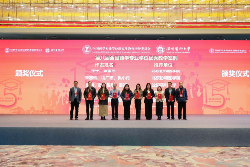 会上举行了颁奖仪式,我校获首届全国药学专业学位教育改革优秀案例 1 项,第八届全国药学专业学位优秀教学案例3项。我校研究生院常务副院长许风国、药学院副研究员鞠艳敏受邀作专题报告,他们围绕相关主题,分享了我校药学专业学位研究生培养模式的创新做法与落地成效,为药学教育改革提供了多元视角。