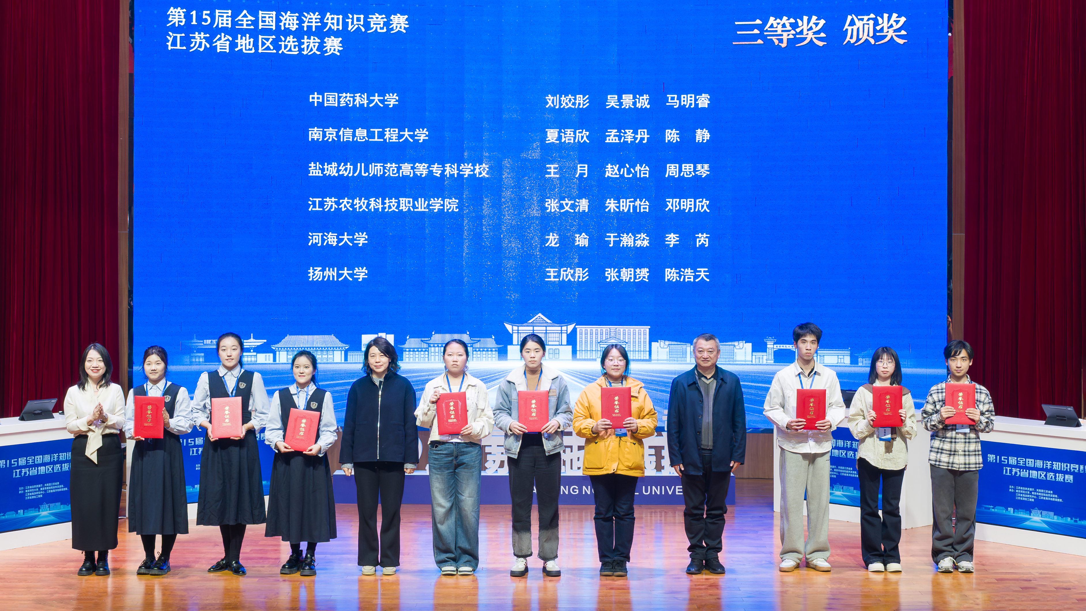 3月14日,由江苏省自然资源厅、共青团江苏省委联合主办,南京师范大学、南京市规划和自然资源局、江苏省海涂研究中心、江苏省海洋地质调查院、江苏省测绘工程院共同承办的第15届全国海洋知识竞赛江苏省地区选拔赛圆满落幕。我校生命科学与技术学院刘姣彤、马明睿、吴景诚三名同学组成的参赛队斩获江苏省三等奖,指导教师蒋文韬获评“优秀指导教师”奖。