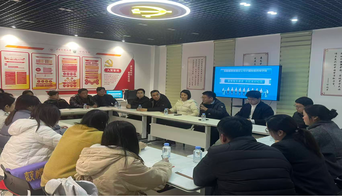 近日,后勤服务集团总公司综合服务党支部与国际医药商学院经济学专业本科生党支部在文思苑学生社区联合开展支部共建活动,师生以“聚焦服务提质共筑美好校园”为主题召开专题座谈会。相关领导及师生代表、门店代表参会。